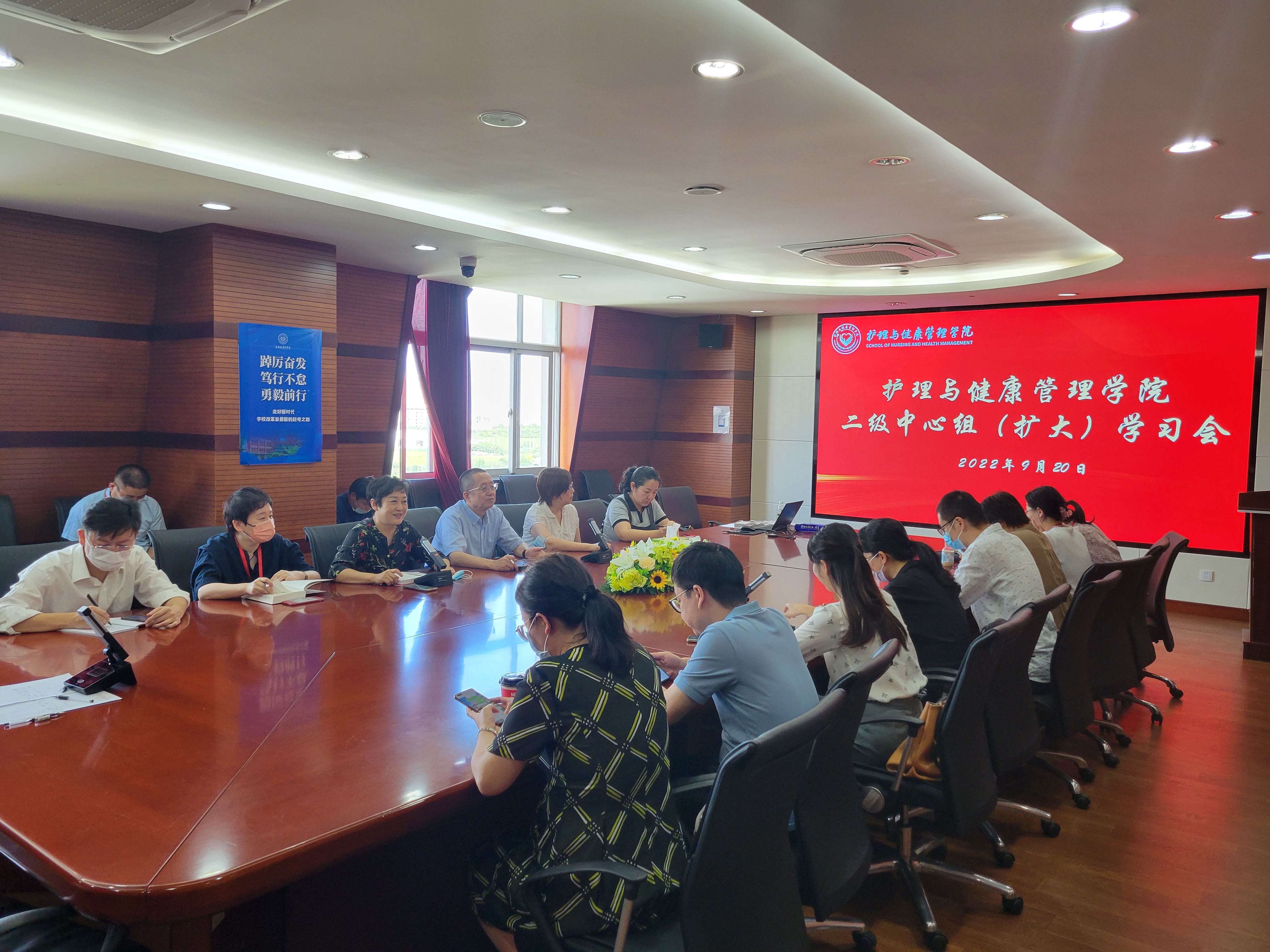 9月20日下午,护管学院召开二级中心组(扩大)学习会,会议围绕《习近平谈治国理政》第四卷关于“教育”的重要论述以及“习近平关于师德师风的系列讲话”精神,以“强化政治引领、牢记师者使命、迎接本科教学工作合格评估”为主题进行学习研讨。学院中心组成员和本科迎评工作组的全体成员参加了此次会议,会议由学院党总支书记郭戎静主持。