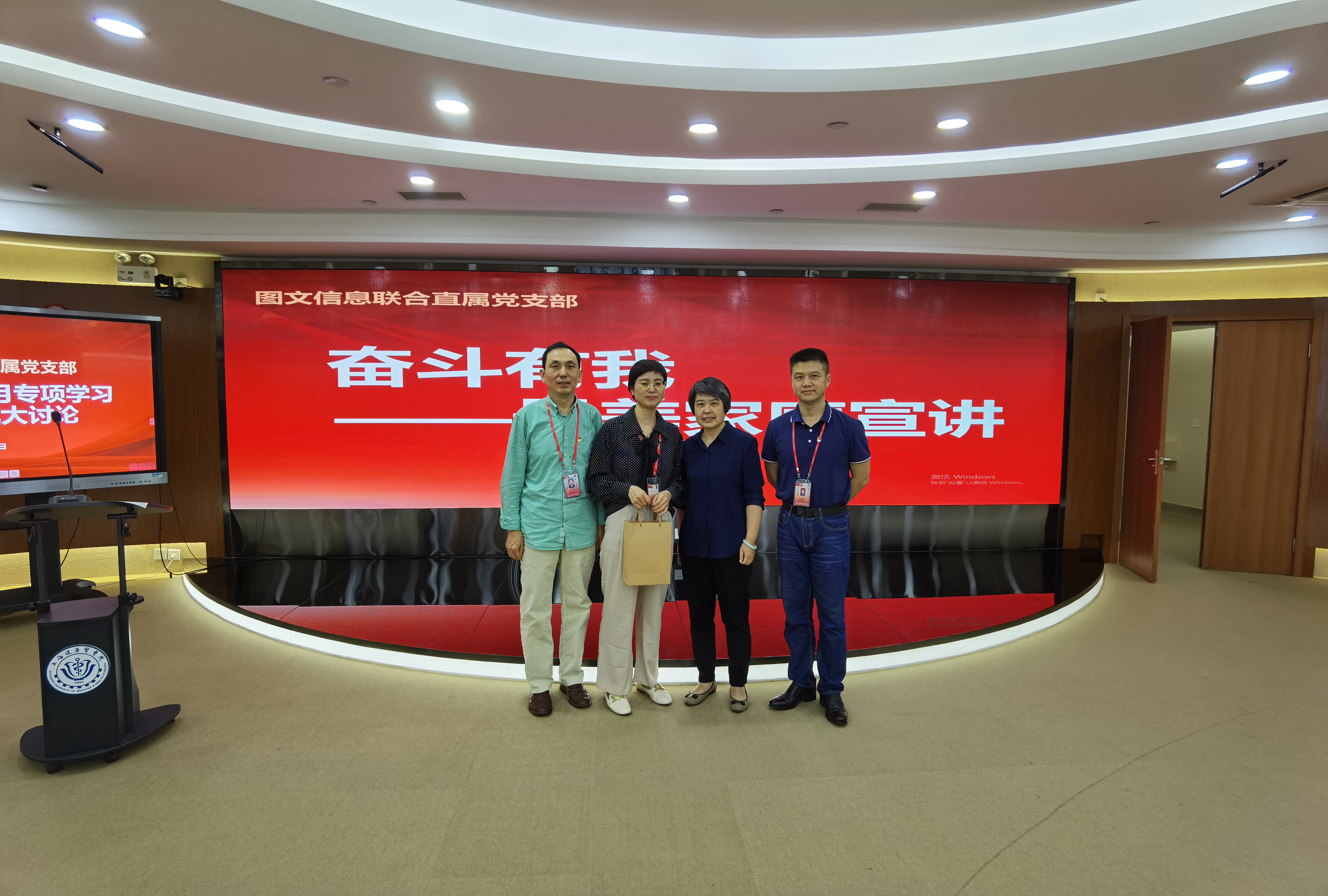 进一步学习贯彻落实习近平总书记关于教育的重要论述特别是关于教师队伍的重要指示精神,强化正确导向,进一步团结凝聚广大教师昂扬向上的精神风貌和立德树人的职业要求,推动师德师风建设,图文信息联合直属党支部于9月29日在南苑图书馆五楼报告厅组织开展师德师风建设月专项学习和师德师风大讨论,工会副主席芦静应邀出席活动,支部全体教职工参与。