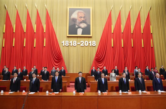5月4日,纪念马克思诞辰200周年大会在北京人民大会堂隆重举行。中共中央总书记、国家主席、中央军委主席习近平在大会上发表重要讲话。新华社记者 鞠鹏 摄