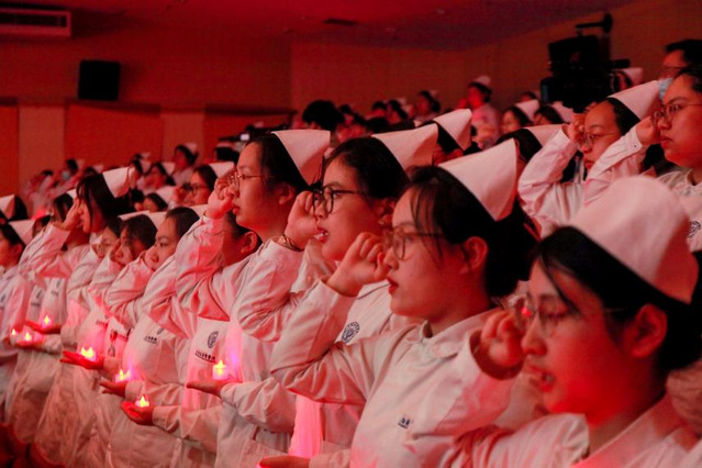 今年的护士节主题是“发展护士队伍,改善护理服务”。作为高水平应用型护理人才的培养主阵地,学校始终坚守初心,不断深化教育教学改革,构建了“产学研赛扶创”“六位一体”的人才培养模式,培育会沟通、会评估、会计划、会实施、会宣教、会反思的“六会”护理人才,将职业精神、人文情怀融入人才培养全过程,为社会培养了一大批高素质护理人才。