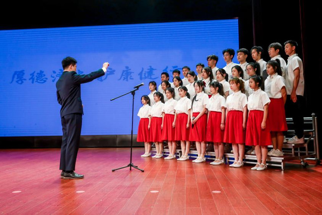 最后,由护理与健康管理学院的学生们带来院歌大合唱《健康护航》,用双手护佑健康,用热血铸就荣光。同学们在倾情演唱中,对学院的热爱更加强烈,对职业的认同愈加深切。