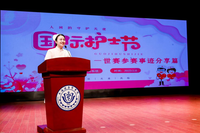 传光授帽仪式后,由护理与健康管理学院的青年教师吴怡欣进行事迹宣讲。吴怡欣获得了2022年世界技能大赛特别赛“健康和社会照护”项目铜牌,这是我国在世赛舞台上该项目获得的首枚奖牌,也是我国在世赛史上“语言和技能并进”类项目的首个奖牌,实现了零的突破。吴怡欣娓娓道来她的备赛参赛经历和感悟,她刻苦奋斗、精益求精的故事激励着大家。未来,她将和学院教师们一起以“知基础、熟技能、善沟通、多应变、强人文、重细节”为目标,培养一代又一代温暖天使的接班人。