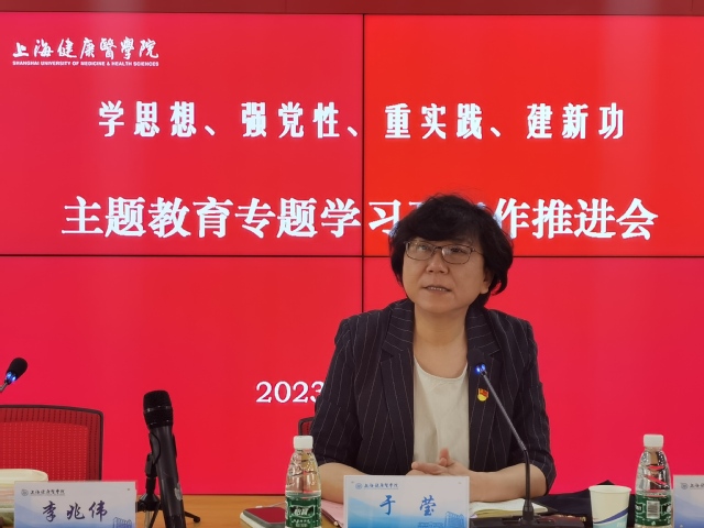 于莹总结讲话。她强调要始终保持思想上高站位,认真学习贯彻近期中央、市委、市教卫工作党委和学校党委关于主题教育工作系列文件精神和决策部署,对主题教育重大意义的认识再深化、再提高,确保主题教育各项任务不折不扣落实到位。她围绕有学校特色的“两度三报一账一单一平台”归纳目前主题教育开展情况,针对职能(教辅)部门主题教育下阶段工作,她提出三点要求:一是继续保持“实”字势头,力戒学用不紧密。各职能(教辅)部门党支部要走在前、作表率,要把主题教育各项工作落到“实”字上,“实”字导向的背后,每一项工作都是具体的、实在的,都必须扎扎实实落到位。二是提高思想站位,打牢学习根基。强调学思想是主题教育的第一要求,自始至终都不能松懈。各党支部要高质量落实线下集中学习,推动理论学习往深里走、往实里走、往心里走。同时,鼓励发挥支部特色搞创新,要说感悟、谈体会、展未来,谈认识、亮态度、明措施。三是结合党支部实际,落实好“学思想、强党性、重实践、建新功”的总要求。各党支部开展主题教育的同时,要坚决防止形式主义、官僚主义,要理清“学、思、用”的根本逻辑,结合部门实际,在以学铸魂、以学增智、以学正风、以学促干上下功夫见实效,敢于刀刃向内,敢于剖析自己,以问题为导向,更好地把学习、调研、整改统合起来,形成一些有益的探索和实践,为学校和部门高质量发展作出更大贡献。