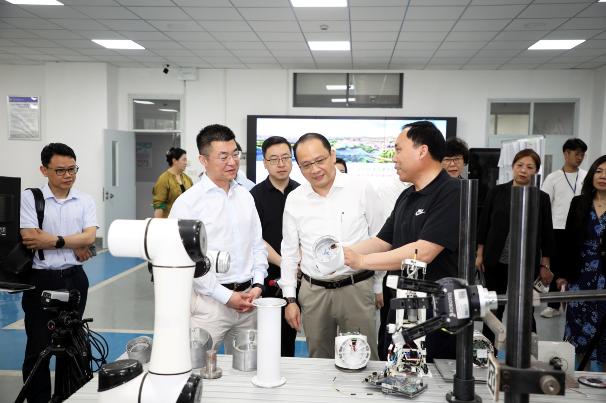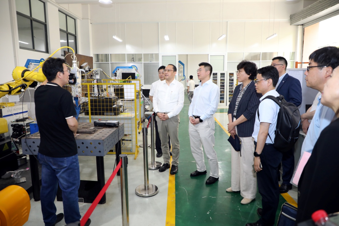 调研会后,吴韬一行在俞涛等人的陪同下参观了上海工程技术大学波音737-800模拟机项目、5G+人工智能应用联合创新实验室、上海市大型构件智能制造机器人技术协同创新中心、上海药物制剂智能装备工程技术研究中心。