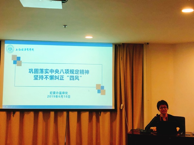 6月18日上午,校纪委在北苑1号楼800会议室召开了《巩固拓展落实中央八项规定精神,坚持不懈纠正“四风”》专题培训,由纪委办主任、监察处处长郑学文主讲。二级学院(部)纪检监察工作负责人、职能部门直属党支部纪检委员以及学校特约监察员参加了培训。
