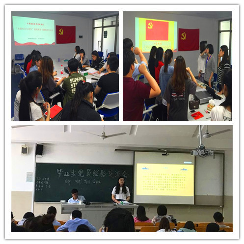 此次的组织生活会主要分为四个篇章:重温入党誓词,学习上海市第十一次党代会会议精神,党日主题活动安排以及支部老师对毕业生党员寄语。第一篇章,在邵真如老师的带领下,党员们又重温了入党誓词毕业生党员深深感受到党员的责任、使命荣耀,表示要在今后的工作中时刻以党员的标准严格要求自己,保持党员先进性,发挥优良传统,坚定理想信念,牢记职责使命,以更加饱满的精神、更加优异的成绩,践行对党的庄严承诺。