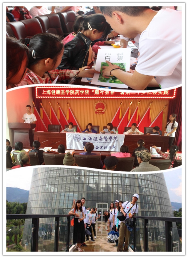24日—25日桃源归来,健康之路任重道远!“薤叶芸香”团队以暑期社会实践为契合点,以上海健康医学院传统文化与内在精神为载体,依托云南特色地理与传统文化资源,努力搭建具有弘扬中华优秀传统文化、传递专业知识的文化平台,传播先进文化知识,宣传大健康理念,践行社会主义核心价值观,助我大学生成长成才。希望今后通过更多的社会实践机会,发挥药学生的专业特长,学有所用,在社会实践中不断深化对专业知识的认识,不断深入对专业所学的思考,在实践中增长知识和才干,全心全意服务社会,将健康爱心棒接力下去!