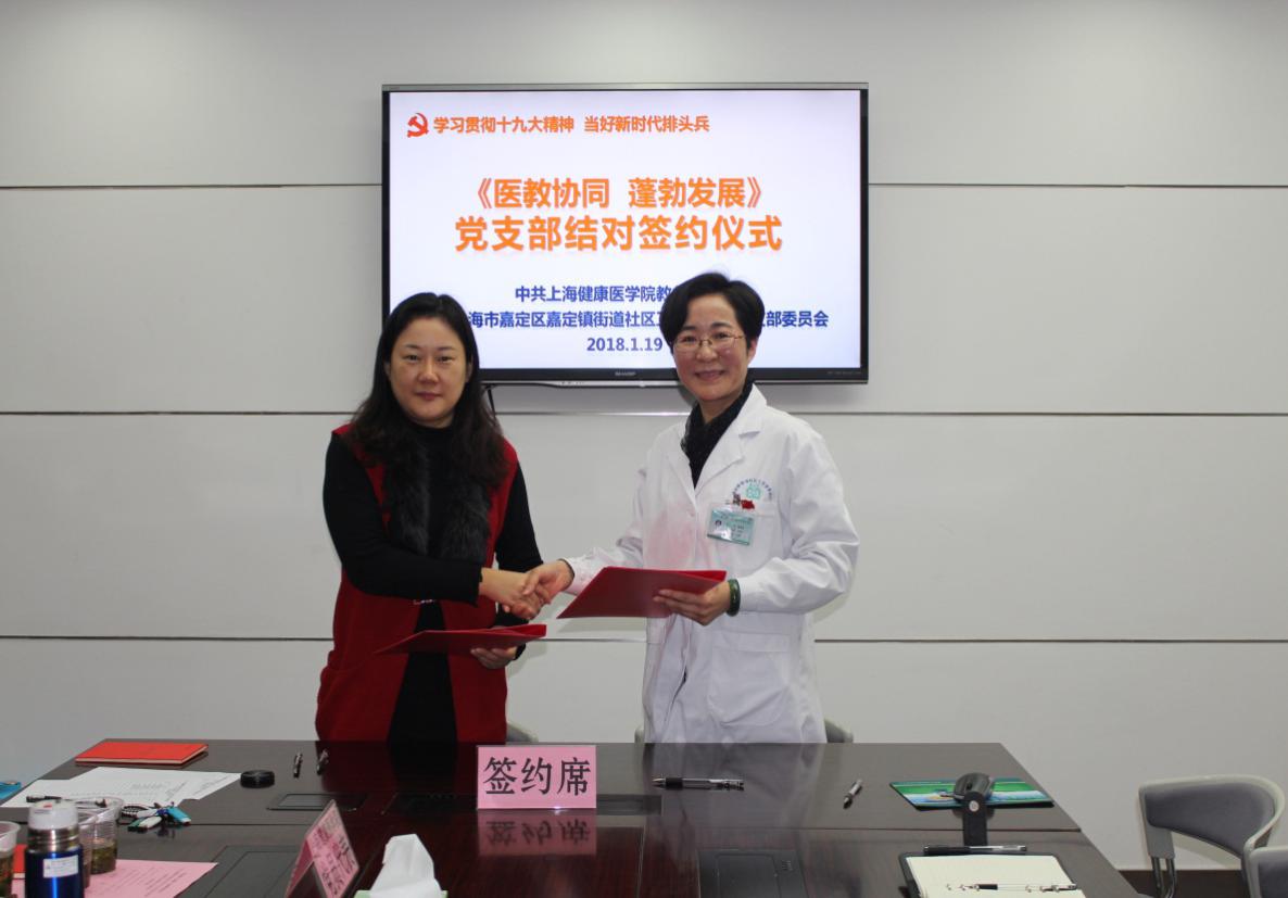 1月19日,教务党支部与嘉定镇街道社区卫生服务中心党支部开展了题为“学习贯彻十九大精神,争当新时代排头兵”的主题党日暨结对共建活动。副校长唐红梅、教务党支部书记张梅、附属嘉定区中心医院副院长陈颖敏、嘉定镇街道社区卫生服务中心党支部书记陶琼英,以及双方支部党员、民主党派人士30余名同志参加。